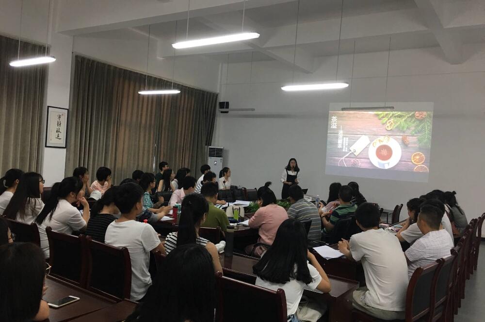 《茶溢》《梦幻泡泡》《本草源》《拍卖网》《浮生香薰》《甜过初恋的味道》《可控温集成电路板》《清风雅橘护肤系列》《暗香疏影》九个项目参加了选拔比赛。比赛分为团队陈述和答辩两个环节。每个项目由负责人向大家介绍创业项目,通过VCR视频和ppt展示了项目成员、项目创新经营模式和理念、制作工序、产品作用和特点、营销方式等,有的团队还直接展示了项目成品。每个团队介绍完毕后,在场的老师对其创业项目进行了提问,有的团队从容准确答疑,给大家留下了深刻印象。