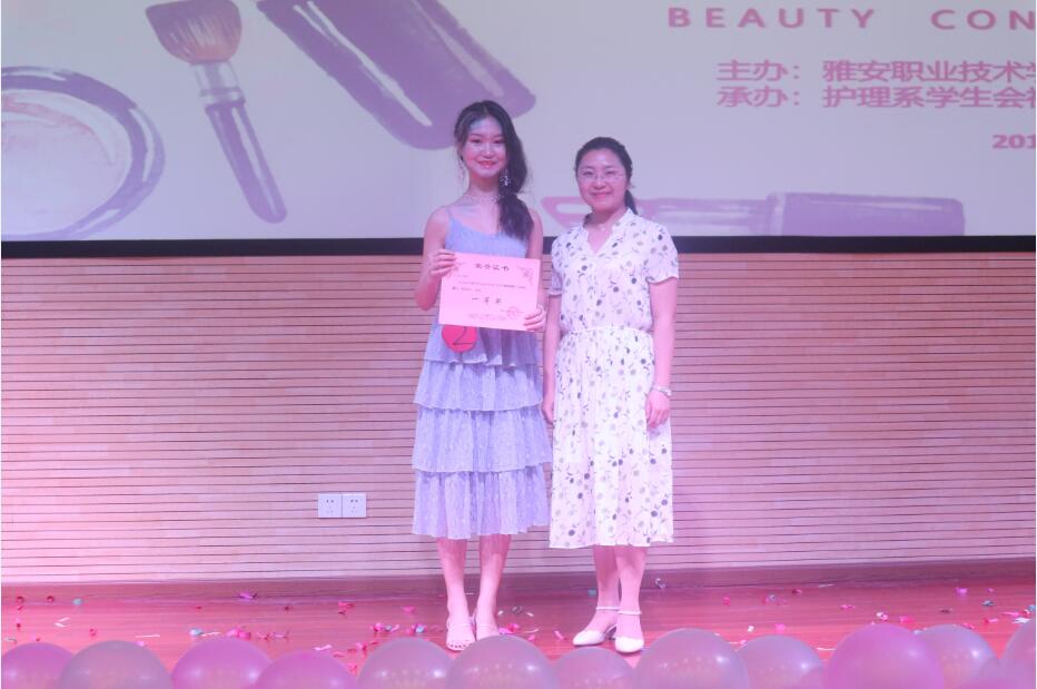 【本网讯】6月12日晚上,护理系第三届“你很漂亮”化妆造型大赛在青年路校区实验验训楼二楼多功能厅顺利举行。护理系党支部书记姚婕、副书记李敏,团总支副书记吴玉阳,教师杨苓梅、张勤、桑璐担任本次大赛的评委。