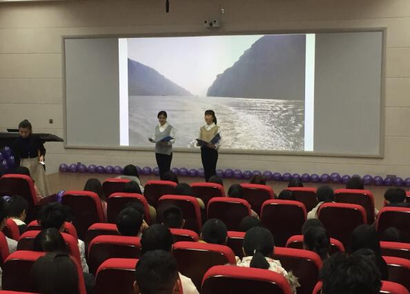 决赛在一首《纪念碑》中拉开了帷幕,整齐的民国学生装,铿锵有力的朗读声,抒发着爱国之情。每组选手各有风格,朗诵内容积极向上,有单打独斗,也有团结协作。看着一幕幕回忆历史的背景图片,听着参赛选手时而激情,时而悲亢的朗诵,大家仿佛回到了1935年的12月,一声声“反对华北自治,反抗日本帝国主义,保全中国领土的完整……”的豪言壮语回荡在耳边。《我亲爱的党》为此次比赛划上了完美的句号。比赛结束,由陈静老师对本次比赛进行总结,陈老师肯定了大家的创意和努力,提出了参赛选手的不足之处。