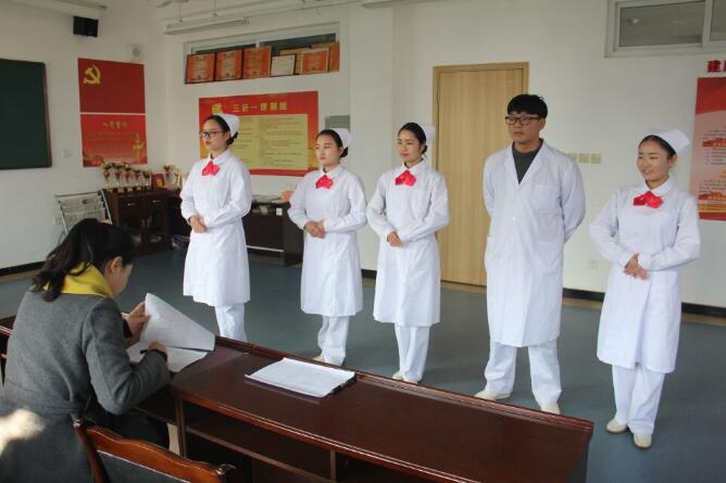 此前,系部发布了医院选拔实习生的信息。从报名同学的学习成绩、获奖情况、学生会任职情况等方面进行筛选,最终向医院推荐了101名学生参加面试。面试采用5人一组的形式进行,面试现场气氛紧张。同学们从容地回答面试官的问题,举止优雅,展现出护理系学子的良好风范,赢得面试官的一致好评。最终,确定了60名同学进入该医院实习。