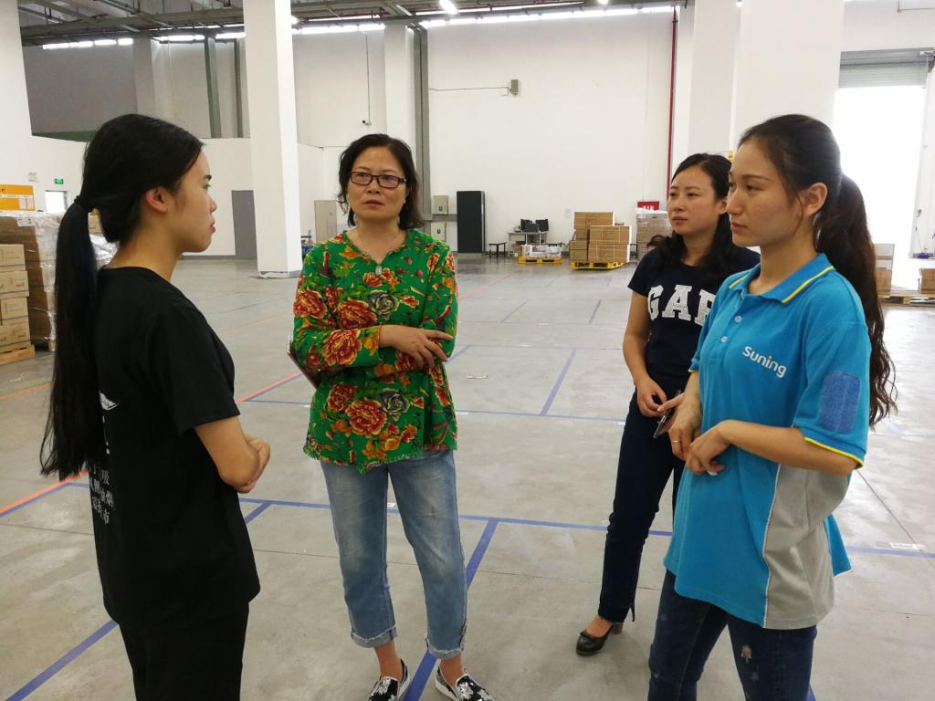 【本网讯】9月25日下午,在国庆节与中秋节即将到来之际,旅游经济管理系主任李霓、副主任李柚带着学院和系部对同学们的关爱之心,前往苏宁云商旗下的成都川宁苏宁物流有限公司彭山物流基地看望正在实习的2015级物流管理专业的同学们。