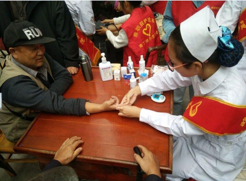 【本网讯】10月17日下午,护理系青年志愿者协会在雅安市雨城区光网智慧小区开展了“秋日健康助航”社区义诊活动。志愿者们斗志昂扬,以饱满的热情和实际行动弘扬正能量,传递爱心。