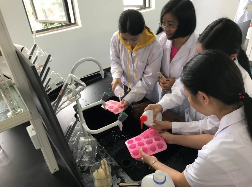 【本网讯】9月19日,药检系团总支学生会组织系部同学在药学与检验实训楼一楼化学实验室进行了手工香皂小制作活动,制备过程由姚永秀老师进行讲解。