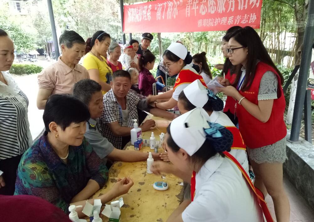 【本网讯】6月13日下午,护理系李俐霖老师带领系青志协约10名同学走进怡心苑小区,开展“南丁格尔”爱心义诊活动,为社区居民送去关爱和健康。