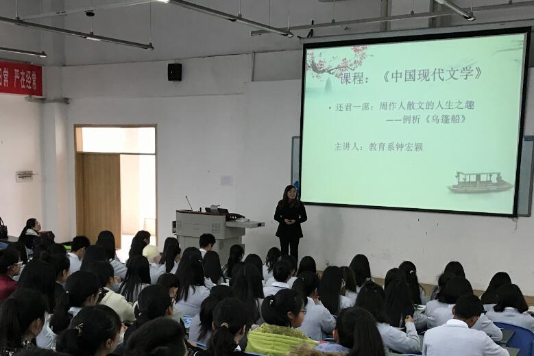 中文教师钟虹颖另辟蹊径以古风配以古典音乐带领师生品味了中国现代作家周作人的大作《乌篷船》,课题内容设计上独具匠心,钟老师教态大方,细节上追求完美,深厚的文学功底,语言抑扬顿挫,充分展示了文学家与当代文人及学生的精神对话,教学任务实施和任务的完成与评价过程中学生参与积极性高,课堂气氛十分活跃。