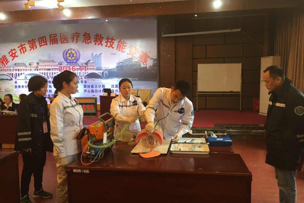 本次比赛共有来自雅安市各县区“120”网络医院及乡镇中心卫生院的26支代表队、69名院前急救战线医护人员参加。10月31日晚进行了统一笔试竞赛,11月1日为技能竞赛。技能竞赛内容有“心肺复苏”、“多发创伤的固定和搬运”、“高级气道管理”三大技能比拼。最后大赛评选出了团队和单项奖前三名。