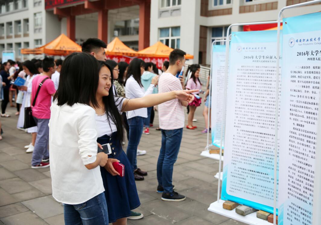 【本网讯】作为学院职业教育活动月活动之一,5月10日下午,由学院招就处与保卫处联合举办、创新创业俱乐部承办的就业创业、征兵入伍政策宣传活动在学院青年路校区图书综合楼前广场进行。市人社局就业促进科李科长、刘老师,雨城区武装部征集科向老师受邀来院,与学院保卫处副处长徐维、招生就业处副处长吴洁等老师为同学们做现场政策咨询。