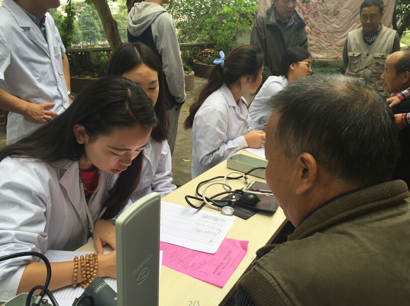【本网讯】10月11日和10月25日,医学系“绿丝带”医疗服务队的20名师生志愿者,利用周末时间先后两次走进雨城区华兴街社区,为社区老人们开展重阳节送健康志愿服务活动。
