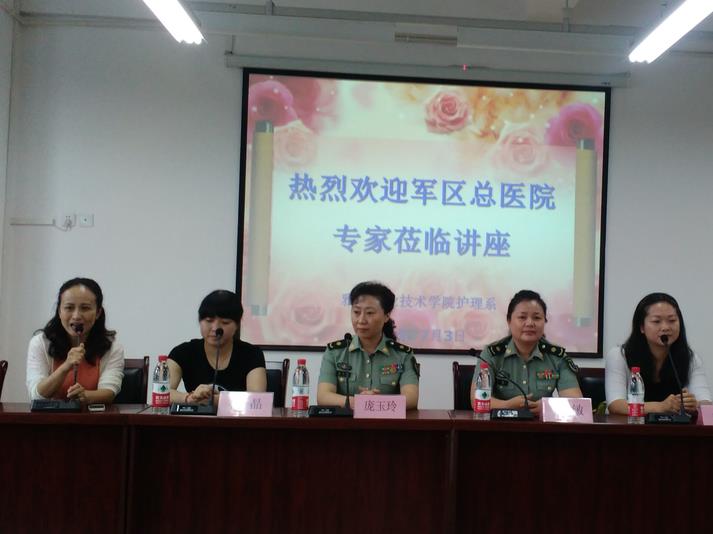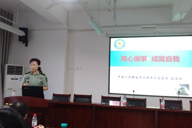 【本网讯】7月3日,成都军区总医院卢敏总护士长一行4人莅临我院,为护理系90余名实习生及实习管理老师举办了系列讲座。卢敏总护士长带来了《护生的角色转变》,庞玉玲总护士长讲座题目为《用心做事,成就自我》,宋敏和杨晶老师分别带来了《成总为我引路》以及《针尖上的护理》。