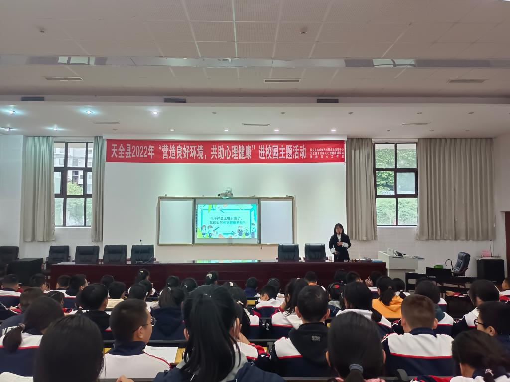 10月10日,联同天全县心理健康辅导站开展心理健康进校园宣讲活动,旨在进一步做好疫情下中学生心理健康辅导工作,助力未成年人健康茁壮成长。中心心理教师何娟受邀赴天全县第二初级中学开展“常态化疫情防控下中学生心理调适”专题心理辅导,共计350余名学生参与。活动以专题讲座和团体辅导相结合的方式展开。专题讲座中,结合案例从十个方面为同学们讲授疫情期间如何预防和调试心理困扰,让同学们更全面的了解心理健康知识,掌握一定的心理调适方法,夯实积极主动寻求帮助的意识。团体辅导则采用正念放松训练,让同学们在体验中放松心情,有效缓解焦虑情绪。学生们积极参与活动,反响热烈,纷纷表示受益匪浅。