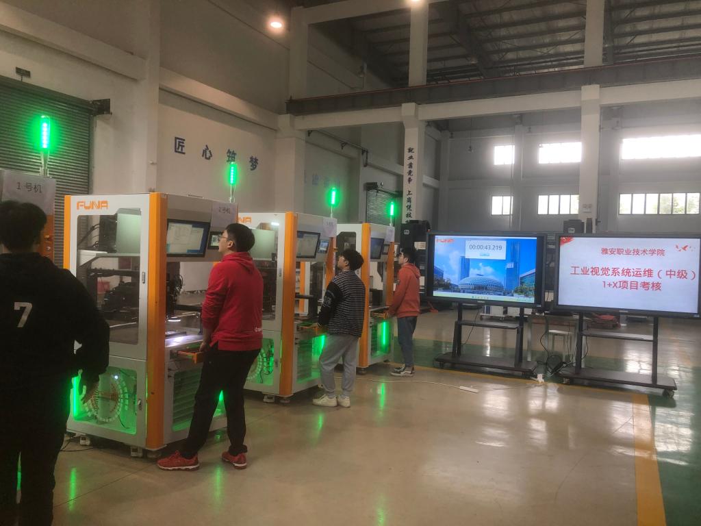 为深入贯彻《国家职业教育改革实施方案》文件精神,推进新时代职业教育的改革发展,做好1+X证书制度试点工作。11月5日-6日智能制造与信息工程学院在现代制造技术搂工业机器人实训中心,圆满完成“1+X” 工业视觉系统运维职业技能等级证书(中级)试点以来的首批考核工作,工业机器人技术专业20名学生参加此次认证考试。