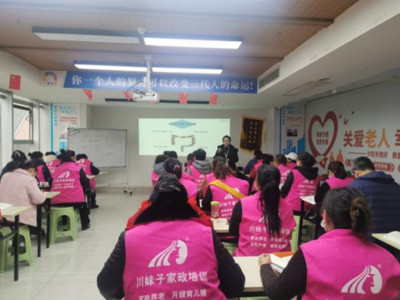 王静一行走访了成都兴三好家政公司、川妹子家政等职业技能培训机构,深入了解企业发展历程、运营模式、培训项目等情况。实地观摩了家政服务、母婴护理、养老护理等培训课程教学情况,就学生实习、劳务输送、就业以及培训等方面探索合作渠道。