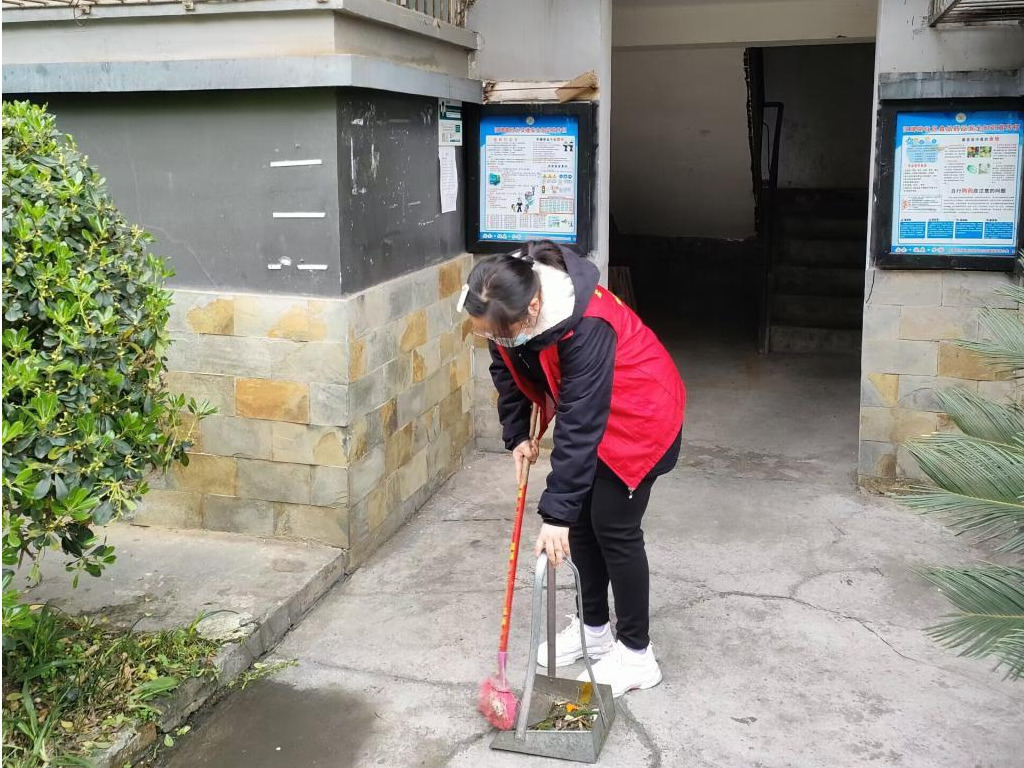 一部分志愿者为居民测量血糖、血压,并向居民普及健康知识,鼓励居民树立积极乐观的生活态度,养成健康的生活习惯;一部分志愿者清扫小区的卫生死角、捡拾道路及绿化带垃圾,清理楼道里堆积的各种杂物和小广告,引导群众爱清洁、讲卫生,形成健康良好的生活居住习惯,共建清洁美丽的幸福家园。
