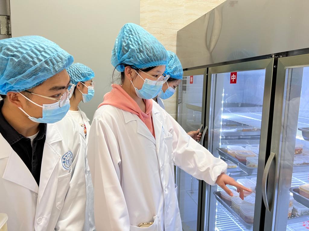 学生代表在食堂工作人员的引导下,进入食堂后厨各区域,参观了后厨操作间、冷冻库房、食品原料库房、食品清洗消毒区、食品加工及烹饪区等场所,了解了学院食堂在食品原料采购、储存、生产、加工等方面的安全管理制度和监控措施。
