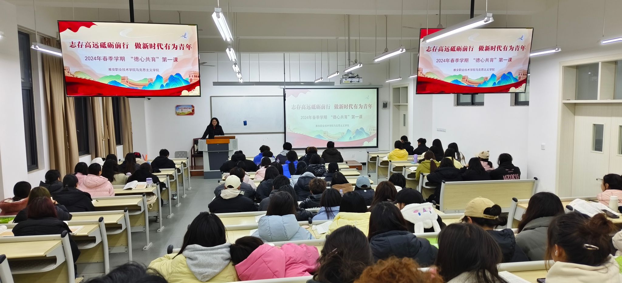 为做好新学期教育教学工作,帮助学生尽快适应校园生活节奏,树立远大理想,按照学院总体要求,马克思主义学院认真组织、精心筹划,扎实开展具有学院特色的2024年春季学期“德心共育”第一课,活动覆盖学生2600余人。