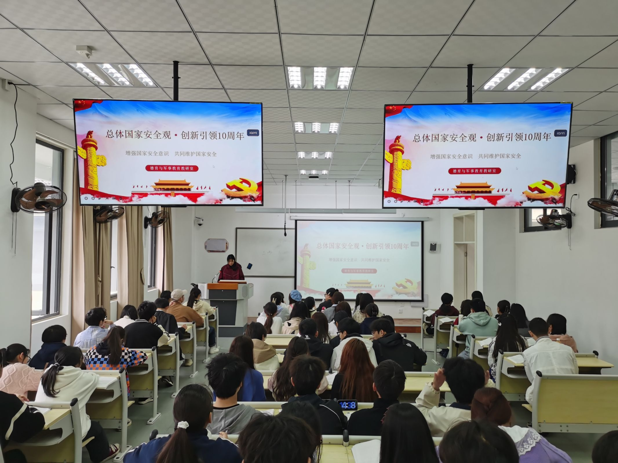 为深入贯彻总体国家安全观,增强青年大学生国家安全意识。在习近平总书记创造性提出总体国家安全观10周年和第九个“4•15”全民国家安全教育日到来之际,马克思主义学院坚持党建引领,结合教学内容在《军事理论》和《大学生国家安全教育》课程中开展了以“总体国家安全观•创新引领10周年”为主题的宣传教育活动。
