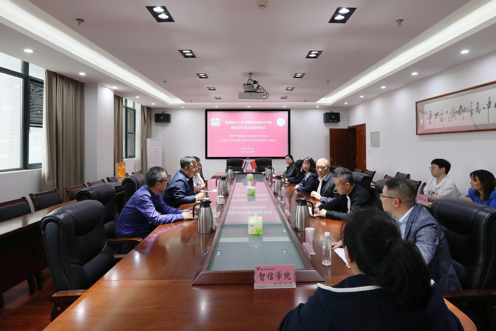 4月22日下午,泰国格乐大学国际交流处副处长姚毓忠一行访问PP电子,并在经开校区综合楼518会议室签订校际合作备忘录。学校党委常委、副校长樊正康,相关二级单位负责人参加会议。