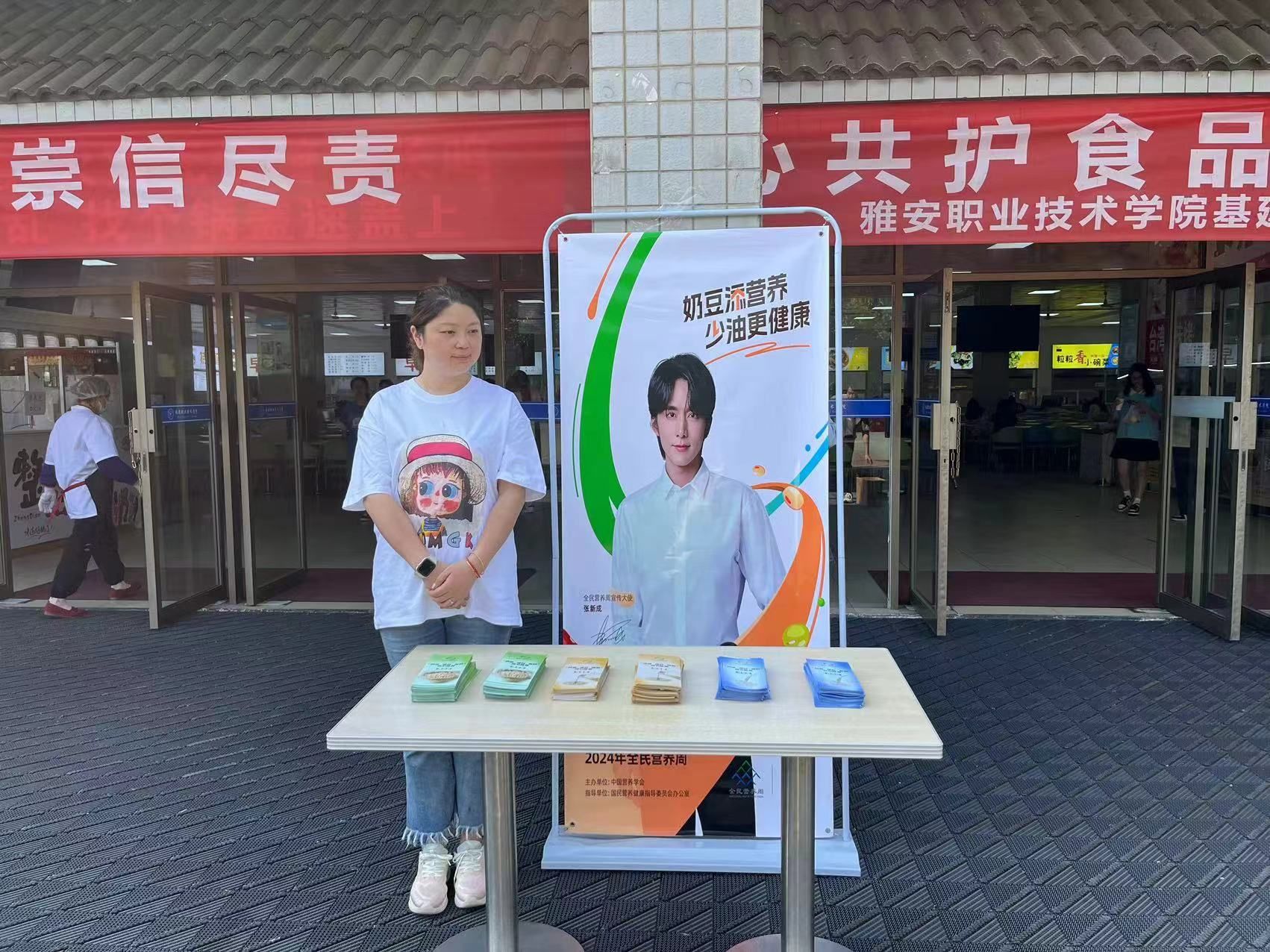 今年全民营养周暨“5·20”中国学生营养日的活动主题是“奶豆添营养 少油更健康”。结合活动主题,基建后勤处还通过摆放展板、发放手册、播放视频、张贴海报等多种形式开展活动,宣传营养健康知识,增强师生健康意识。