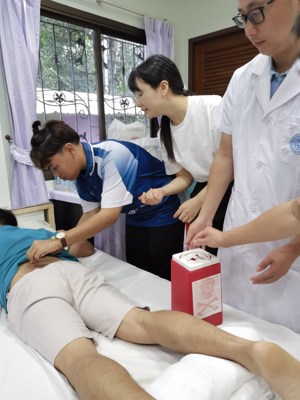 本次中医“义诊+临床带教”,共计治疗患者64人,就颈肩腰腿痛疼痛、中风后遗症、关节炎等十余个病种进行了针刺治疗,对中医辨证、针刺手法、腧穴配伍等内容进行了现场教学。帕博高医院中医科曾留学中国学习针灸推拿的医生魏珍珍说:“本次两名中医专家来我院带教,让我们受益匪浅,在临床治疗中的教学模式,印象深刻,我们学会了更多的针灸技能,坚定了我们使用中医技术治疗疾病的信心,相信中医一定能在泰国发扬光大。”