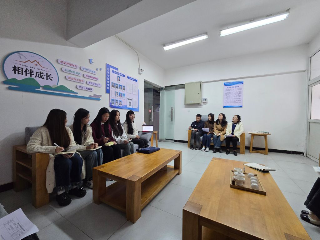 学校经济与管理学院“一站式”学生社区自建立以来,始终坚持以习近平新时代中国特色社会主义思想为指引,积极落实立德树人根本任务。10月29日下午,马克思主义学院“薪火”宣讲团再度走进学生社区,为学生们带来“弘扬改革开放精神 推进全面深化改革”的主题宣讲。经济与管理学院直属党支部书记姚婕、宣传委员刘梓萌,团总支书记周圆、副书记王英参加。