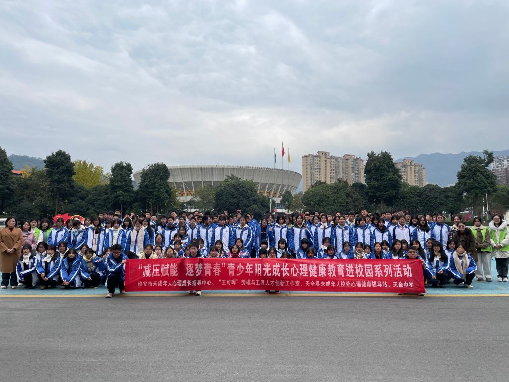 为贯彻落实《四川省全面加强和改进新时代学生心理健康工作实施方案》等相关文件精神,大力推进未成年人心理健康工作,促进青少年心理素质提升,培养积极向上的良好心态,11月26日,受共青团天全县委邀请,学校心理教师王可晖、魏成毓、何群、侯述娟四位教师携学生志愿者赴天全中学开展“减压赋能,逐梦青春”青少年阳光成长心理健康教育进校园系列培训,共计200余名高一、高二学生参与。