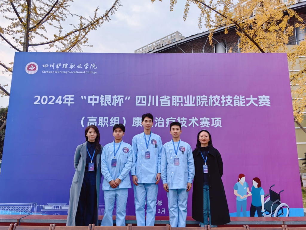 12月4日至5日,由四川省教育厅主办、四川护理职业学院承办的2024 年“中银杯”四川省职业院校技能大赛(高职组)康复治疗技术赛项在四川护理职业学院成都校区举行,来自省内高职院校的27支队伍参赛,学校中医与康复养生学院教师王雪、周媛玲带领杨顺、谭枭鹏、文松3名康复治疗技术专业学生参加比赛,取得了综合成绩排名第五、团体二等奖的好成绩。
