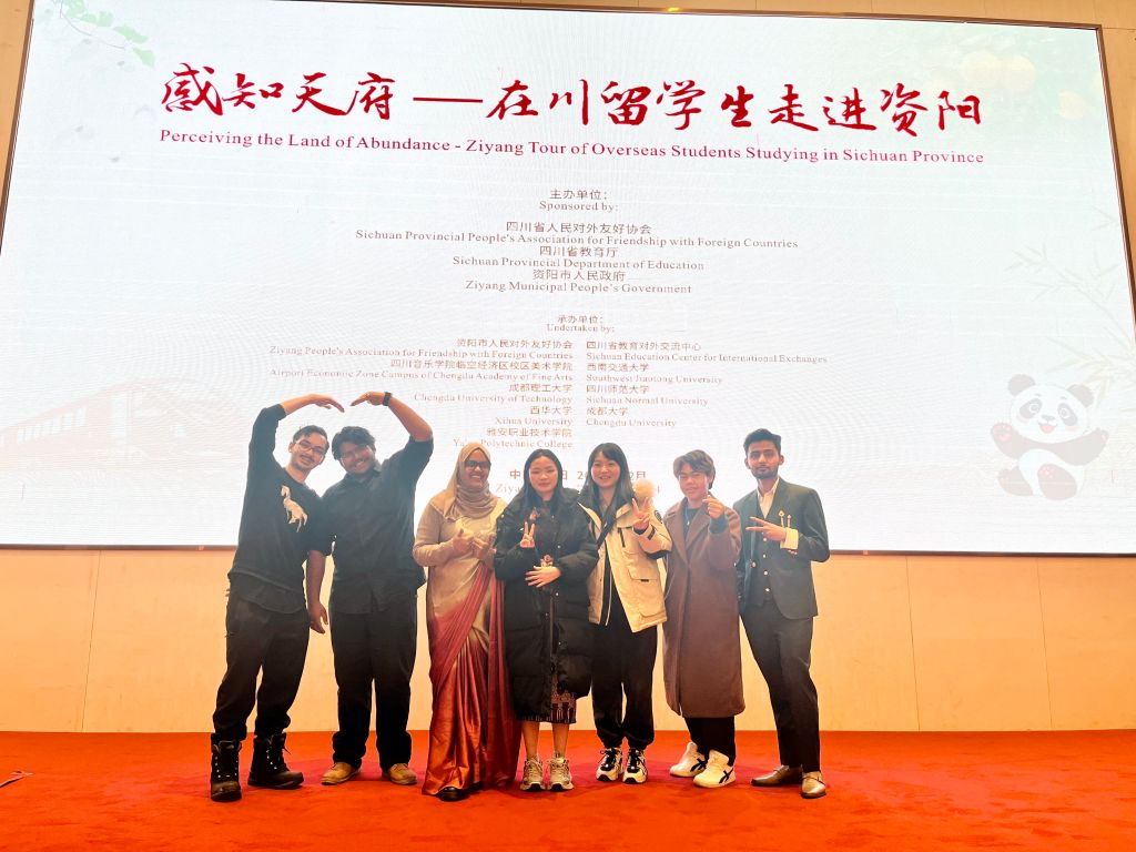 近日,PP电子6名留学生参加了“感知天府-在川留学生走进资阳活动”。该活动由四川省人民对外友好协会、省教育厅、资阳市人民政府共同主办,旨在促进“留”与“学”双向交流互动,向在川留学生们展现巴蜀传统文化与乡村振兴的成果,推动不同文化间的交流与融合。