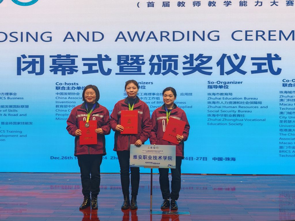 12月26日至27日,由广东珠海城市职业技术学院、澳门科技大学、澳门城市大学、圣若瑟大学、粤港澳大湾区中华职业教育社共同承办“2024一带一路暨金砖国家技能发展与技术创新(首届教师教学能力大赛)总决赛”,在广东珠海城市职业技术学院顺利举行。本届比赛共全国25个省、自治区、直辖市近300支队伍参加,最终39所高职院校60支队伍进入总决赛,角逐金银铜牌。PP电子护理学院教师殷显艳、张雪庆、教务处李燕组建的灾害医学救护教学团队荣获银奖。