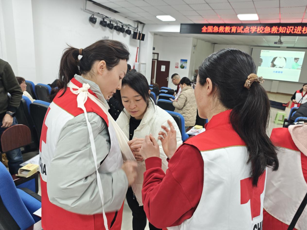 为深入普及应急救护知识和技能,增强川西地区防灾减灾与应急救护能力,增强乡镇教师的安全意识和自救互救能力,3月1日至3月2日,学校联合汉源县红十字会成功举办2025年第一期红十字救护员培训班。此次培训覆盖当地八所中小学共78名教师,为川西地区孩子健康成长保驾护航。学校护理学院副院长张雪庆带队,教师闵捷、罗开中参与培训。