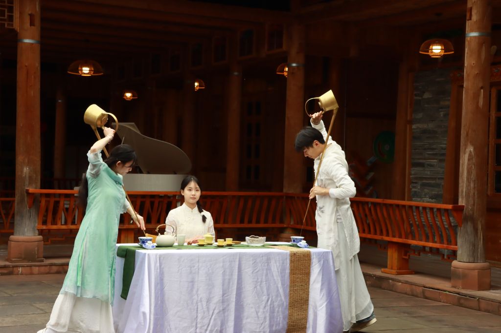 茶艺表演环节,学校学生带来的茶艺表演“铜壶千古韵,一茶四海情”将本次活动推向了高潮,熟练的技艺展现了独特的茶文化魅力,赢得现场掌声阵阵。