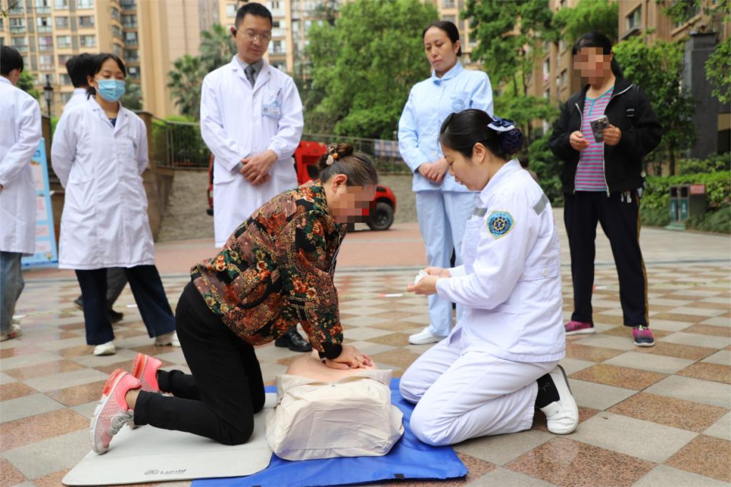 活动现场搭建多学科联合诊疗平台,精准对接居民健康需求。由儿科、外科、中医·康复医学科、急诊科组成的专家团队为居民提供全方位医疗服务:儿科专家开展儿童生长曲线评估及疫苗接种规划指导;外科团队针对泌尿系统疾病、肿瘤防治及疝气诊疗进行专业解答,重点普及早癌筛查知识;中医·康复医学科通过体质辨识、推拿体验等方式,为颈肩腰腿痛患者制定居家康复方案;急诊科创新采用“情景模拟+实操演练”模式,借助医学模拟人开展心肺复苏(CPR)和海姆立克急救法培训,强化居民急救技能掌握度,居民积极参与“黄金四分钟”急救现场教学。针对高龄、失能等特殊群体,医院特别组织“流动医疗小分队”开展上门诊疗服务,实现医疗服务“零距离”。
