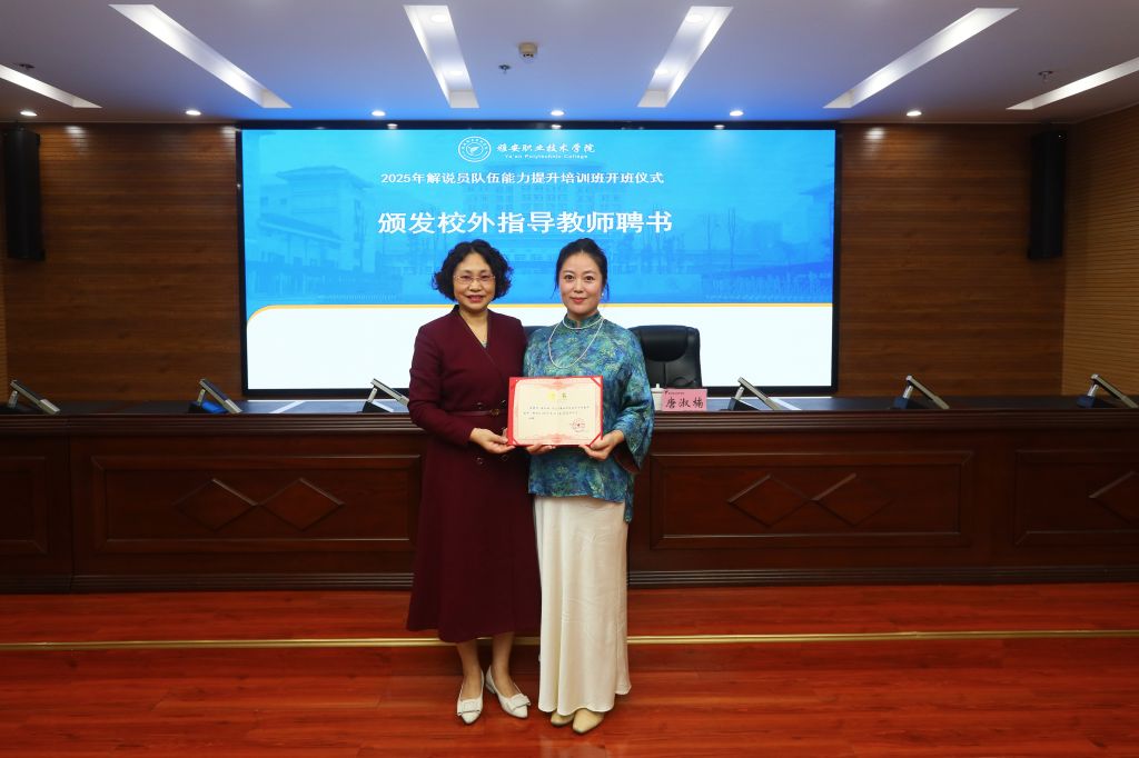 10月14日下午,学校在经开区校区综合楼311会议室举行解说队伍能力提升培训班开班仪式。学校党委常委、宣传统战部部长、工会主席夏安琼,雅安市融媒体中心影视专题部主任唐淑楠,相关部门中层干部及全体师生解说员参加开班仪式。