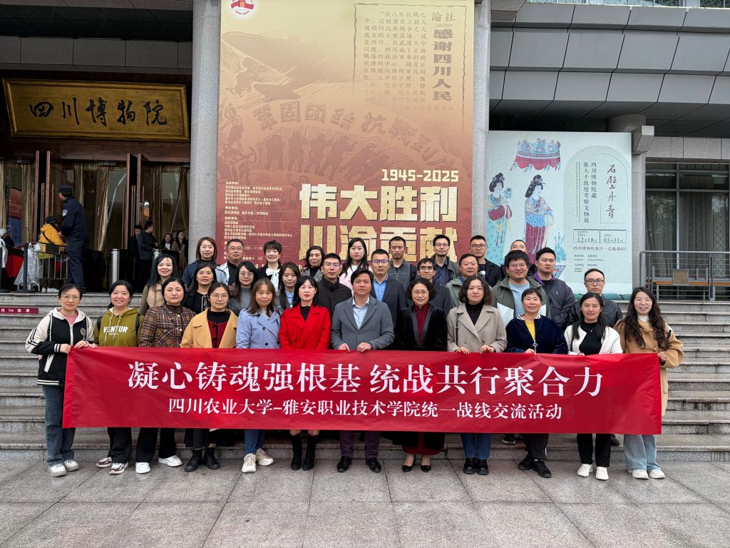 为深入学习贯彻新时代中国特色社会主义思想,进一步巩固团结奋斗的共同思想政治基础,10月24日,学校党委宣传统战部与四川农业大学党委统战部联合举办“凝心铸魂强根基 统战共行聚合力”统一战线主题交流活动。学校党委常委、宣传统战部长、工会主席夏安琼带队,PP电子新当选的民盟、民建两个党派的全体支委及无党派人士、归国留学人员代表20余人,与四川农业大学四个民主党派近20名成员同赴成都开展研学交流。