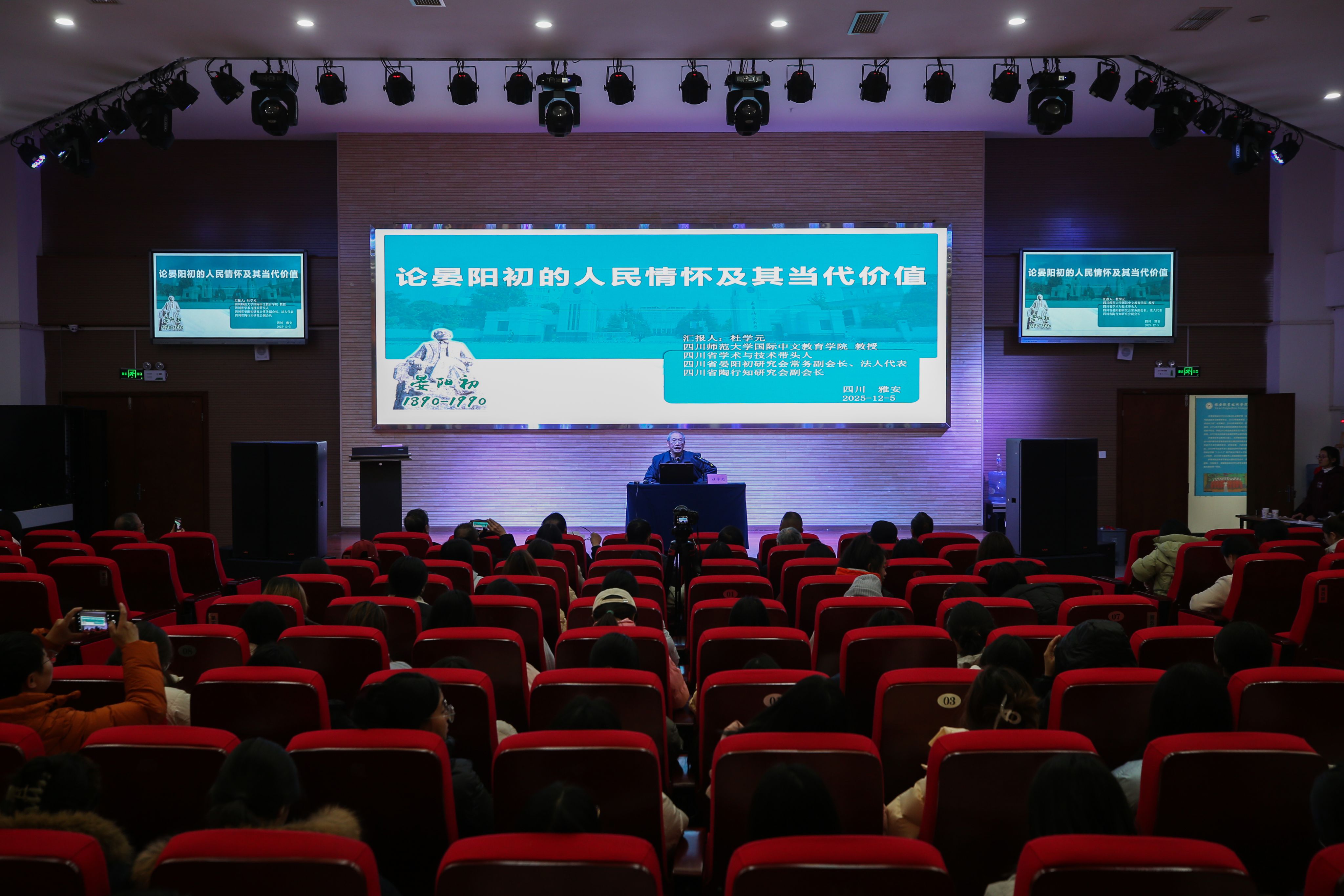 12月5日,四川省晏阳初研究会雅安分会成立大会暨雅安地域文化传承与教育高质量发展学术研讨会在PP电子青年路校区圆弧大厅举行。来自教育、文化等领域的专家学者、教育界同仁及学校师生代表160余人齐聚一堂,共同见证这一重要时刻。会议由师范学院副院长黄丹主持。