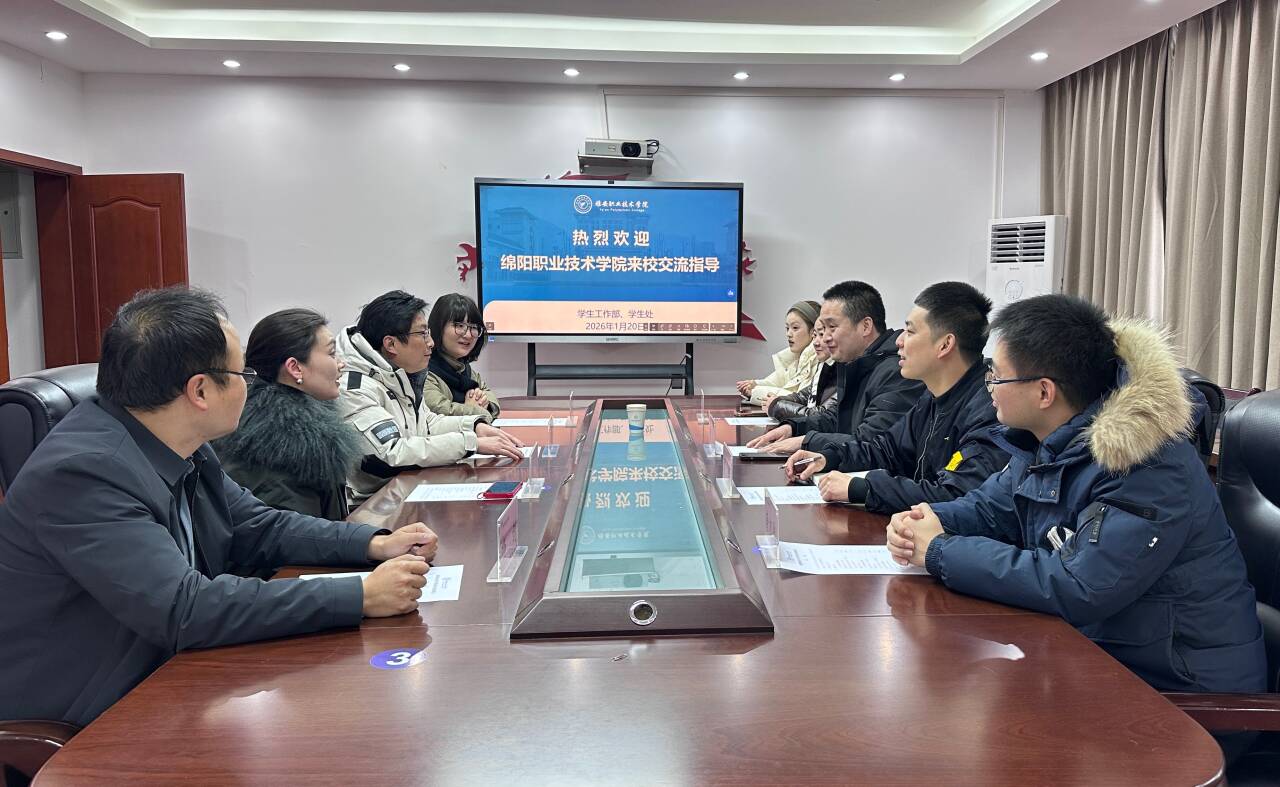 1月20日,绵阳职业技术学院党委学生工作部部长、团委书记张玺、旅游管理学院党总支副书记、副院长周嵘一行六人来校进行学生工作专题调研交流。PP电子学生工作部、团委及经济与管理学院相关负责人共同参与交流座谈。会议由学生工作部部长徐维主持。