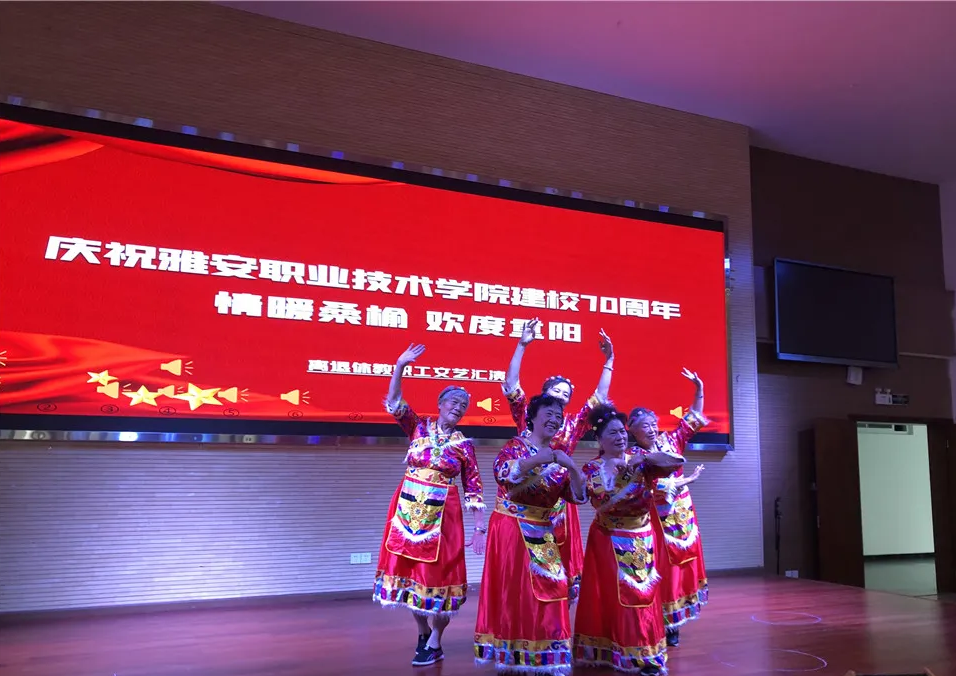 此次文艺演出也是该学院建校70周年的系列活动之一,退休教职工们自编自演,以诗、歌、舞等形式展示工作、学习与生活成果。
