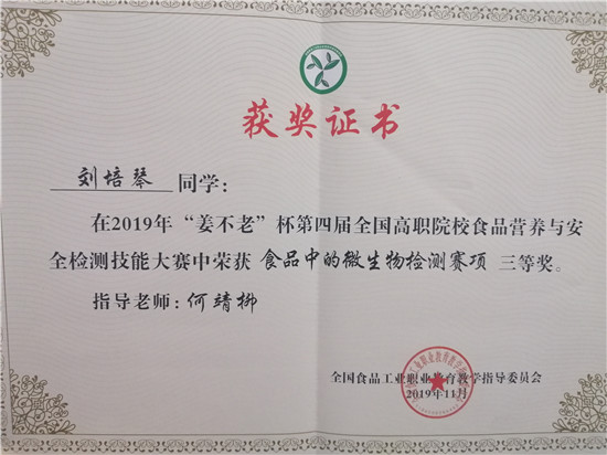 四川新闻网雅安11月21日讯(何靖柳 姚志如 文/图)11月14日-17日,第四届全国高职院校食品营养与安全检测技能大赛由全国食品工业职业教育教学指导委员会主办,江苏农林职业技术学院承办,全国共83所院校,163名选手参加比赛。经过激烈角逐,PP电子游戏网站药学与检验学院食品专业的两名学生分别获得“食品中营养素检测”赛项三等奖、“食品中的微生物检测”赛项三等奖和团体三等奖的优异成绩。