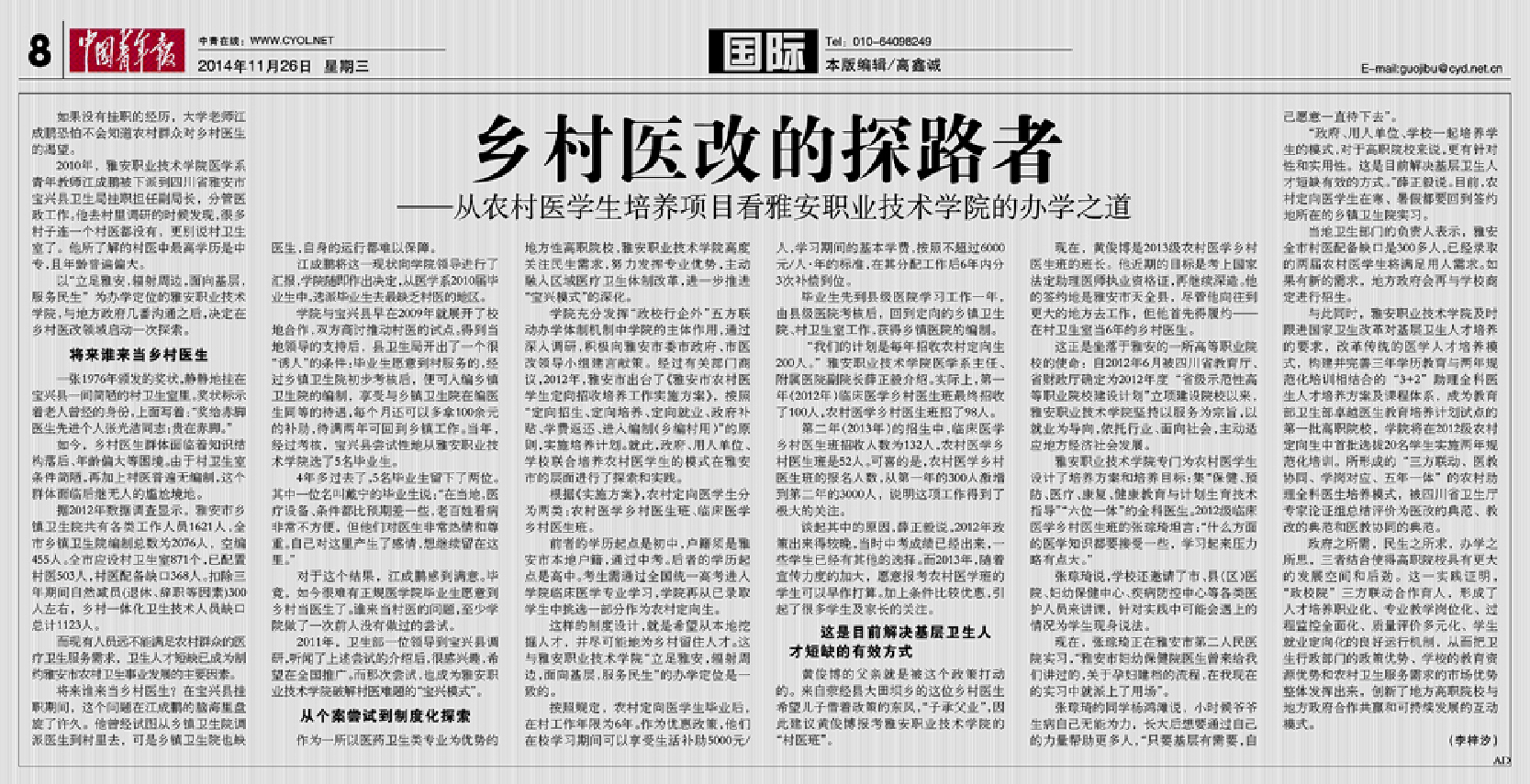 上一条:【中国青年报】职业精神的布道者