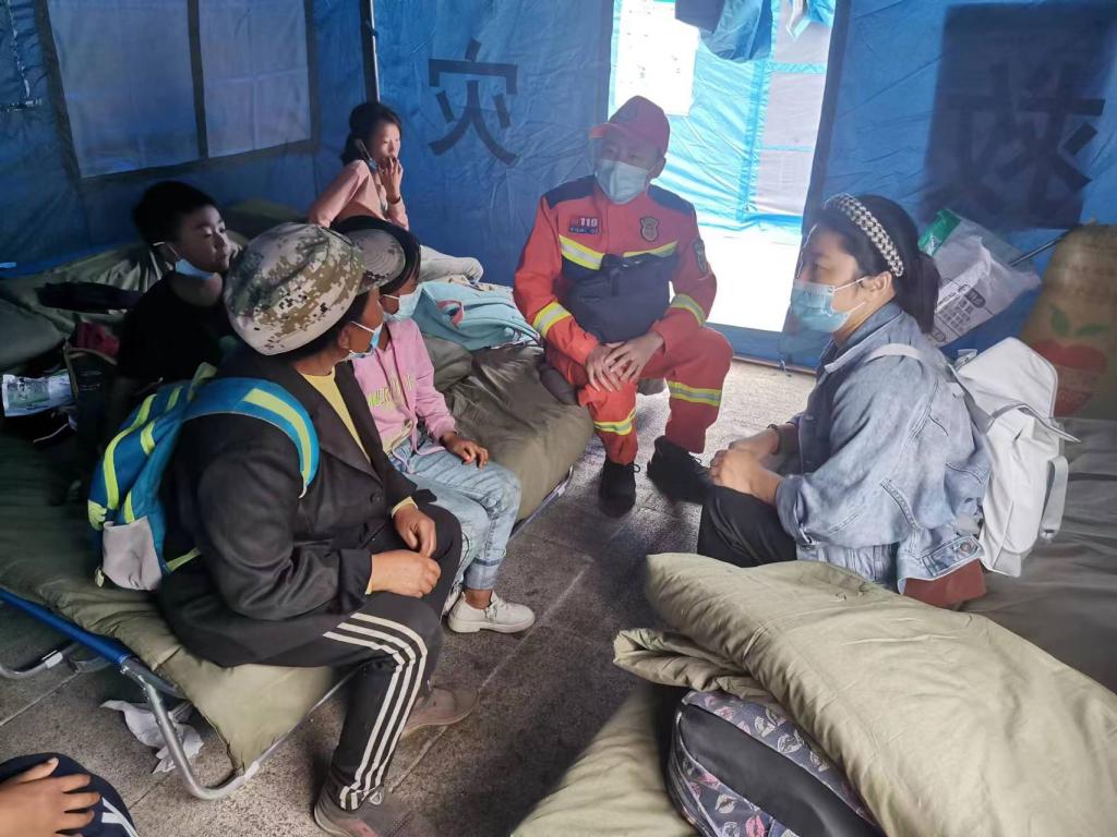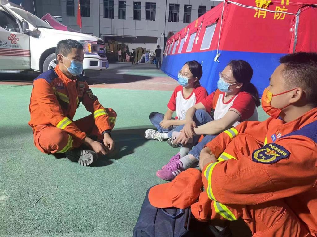 王可晖和燕莉梅两位心理教师作为第一批志愿者随雅安消防救援支队赶赴石棉县抗震救灾一线,开展战地心理疏导工作,当好了救援人员和受灾群众的 “解压器”。学院心理教师高晓明作为学校抗震救灾第二批志愿者,随雅安消防支队前往石棉县新民藏族彝族自治乡安置区和王岗坪乡安置区对受灾群众和消防员进行心理走访,和爱人分别奋战在抗震救灾一线。通过开展心理健康评估与筛查,运用心理危机干预技术,让受灾群众与救援队员敞开心扉,释放情绪,缓解恐慌心理,及时帮助受灾群众快速恢复正常生活和身心健康。