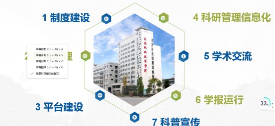 10年间,学院科研从零起步跨越式发展,年度科研经费达800万,累计科研经费总量达到6千万元,省市级科研项目达到365个,省级科普基地2个,院士(专家)工作站1个。科研实力在四川西部同类院校中居于领先。