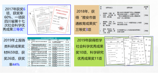 3. 研究平台建设辐射带动周边中高职院校发展作用突显。推进高等学校继续教育资源开放,实现雅安本地群众就近就地转产转岗就业的愿望及提高生活水平、提高科学文化素养的需求。